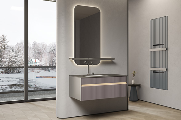 柜體材質:高級灰免漆板+朗生水磨石面板